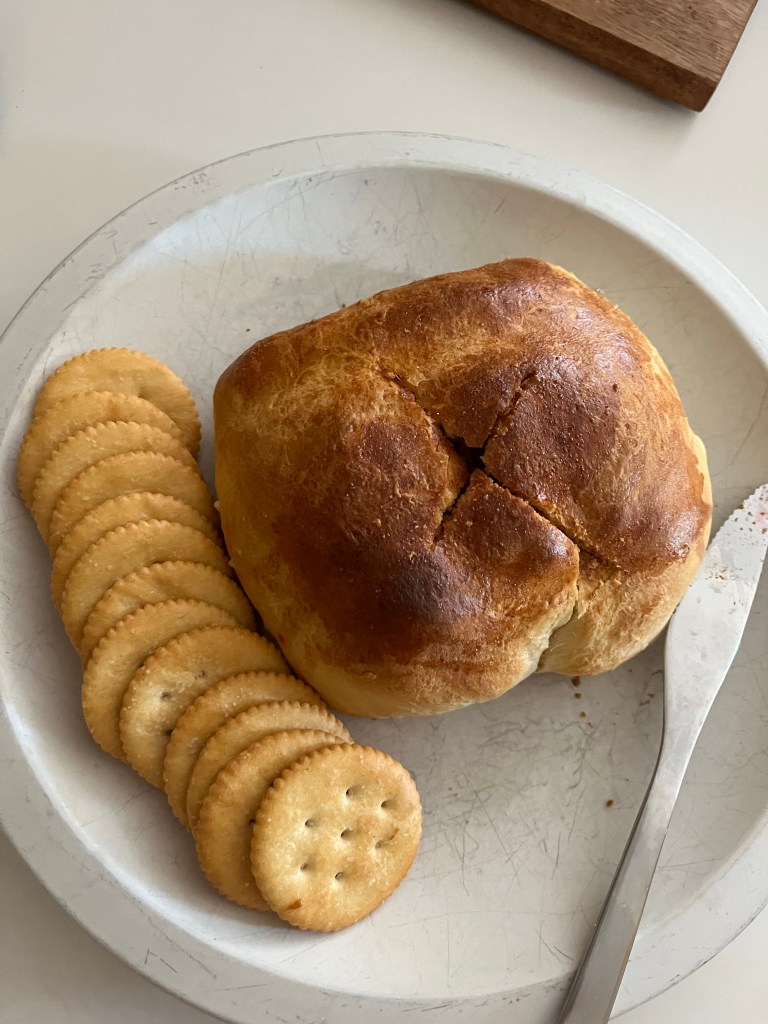 I made Crescent roll wrapped brie with my raspberry jam on top of the brie. It turned out great!