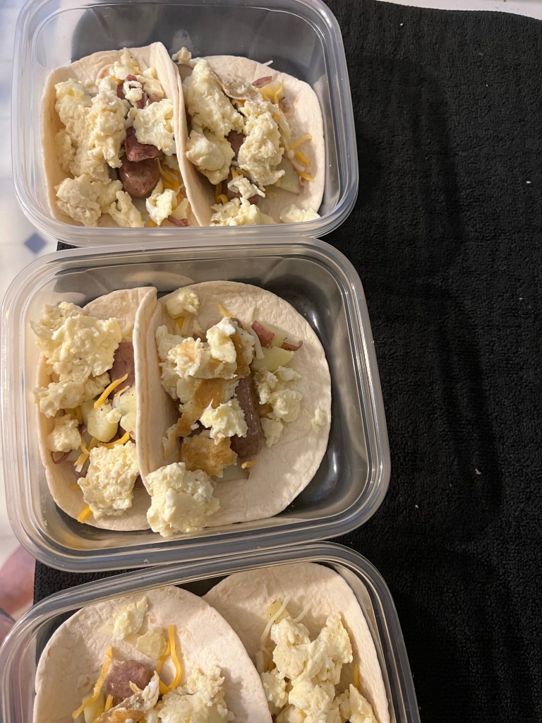 I did a little meal prep – I had the small low carb tortillas so I made breakfast tacos and two breakfast burritos…