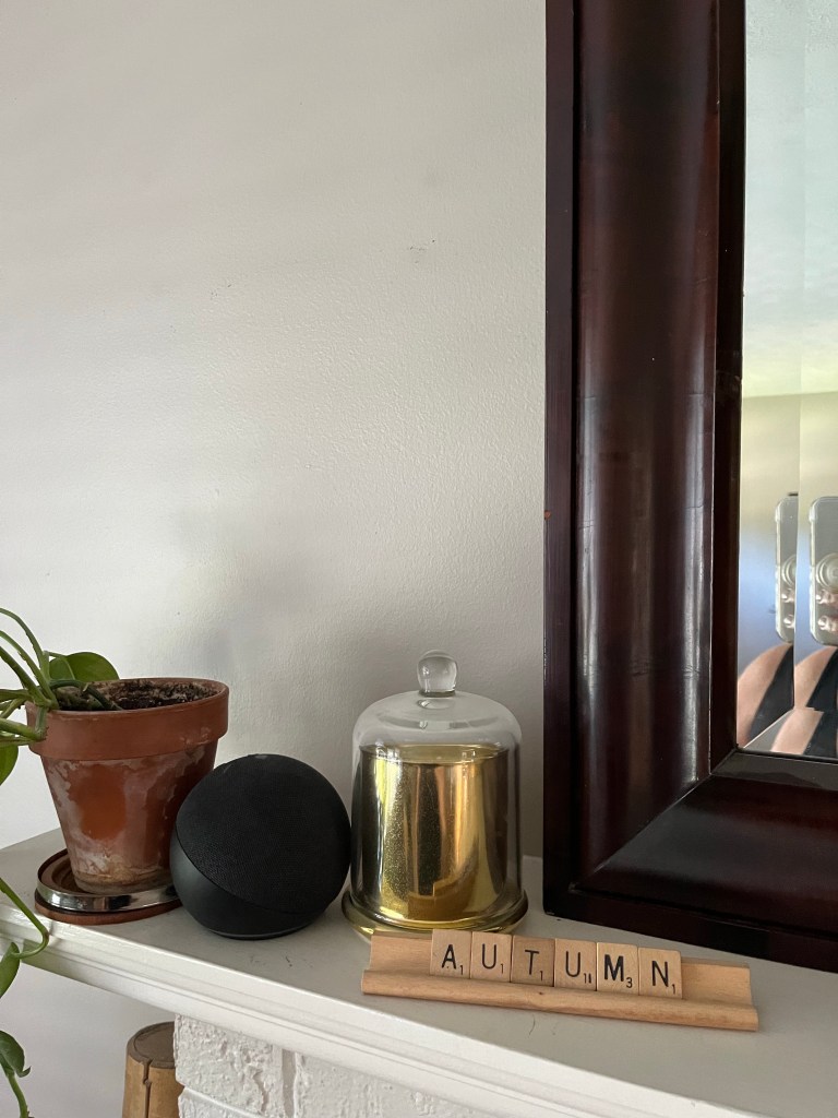 Inside, I always do my mantle. I love the idea to take old Scrabble letters and spell out different things. I have 20 Scrabble boards in my classroom (Spanish version) so I stole a few tiles from these games. It’s ok! I still have plenty for the kids!