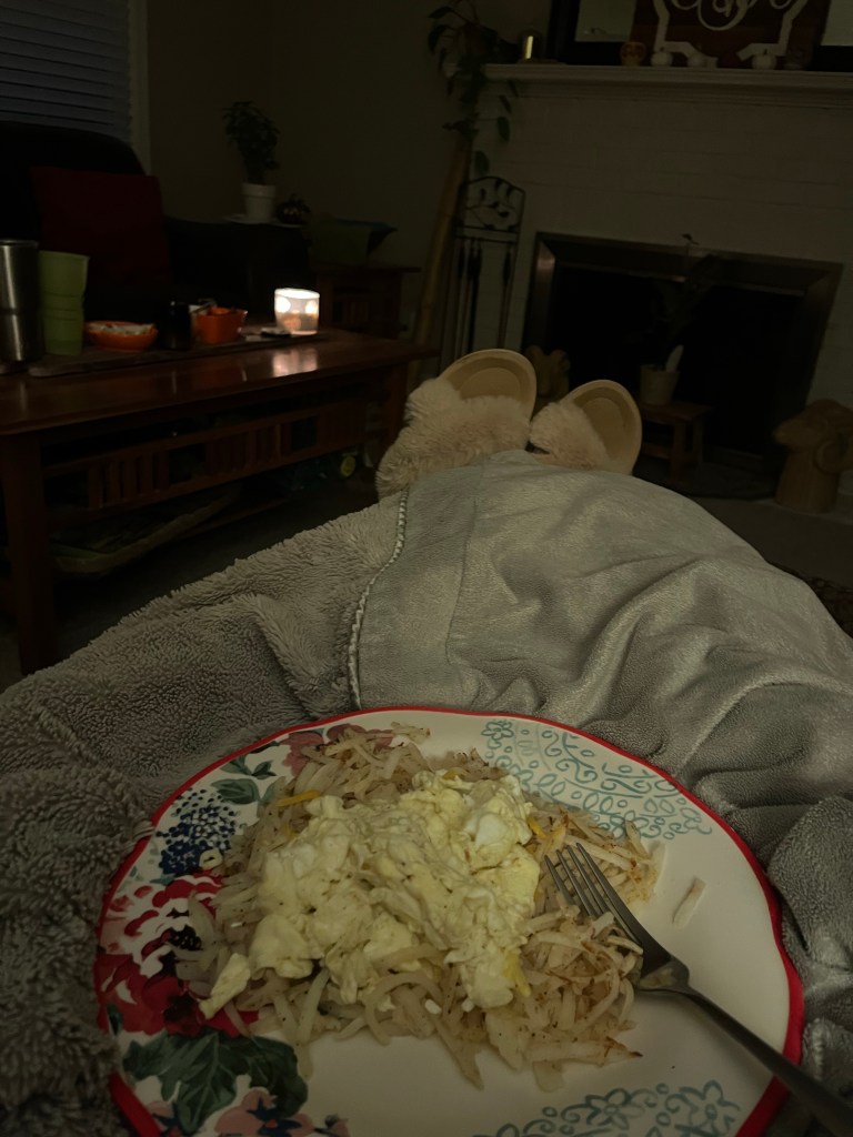Sunday morning I was starving and made myself some hashbrowns and eggs.