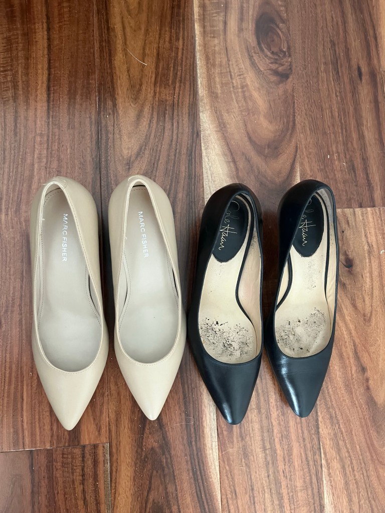 The black Cole Haan heels are the ones that I have been wearing with my faux leather pants. Excuse the insides. I recently purchased the taupe ones but I haven’t worn them yet. I didn’t have a taupe heel in my closet. They are Marc Fisher and I really like his shoes.