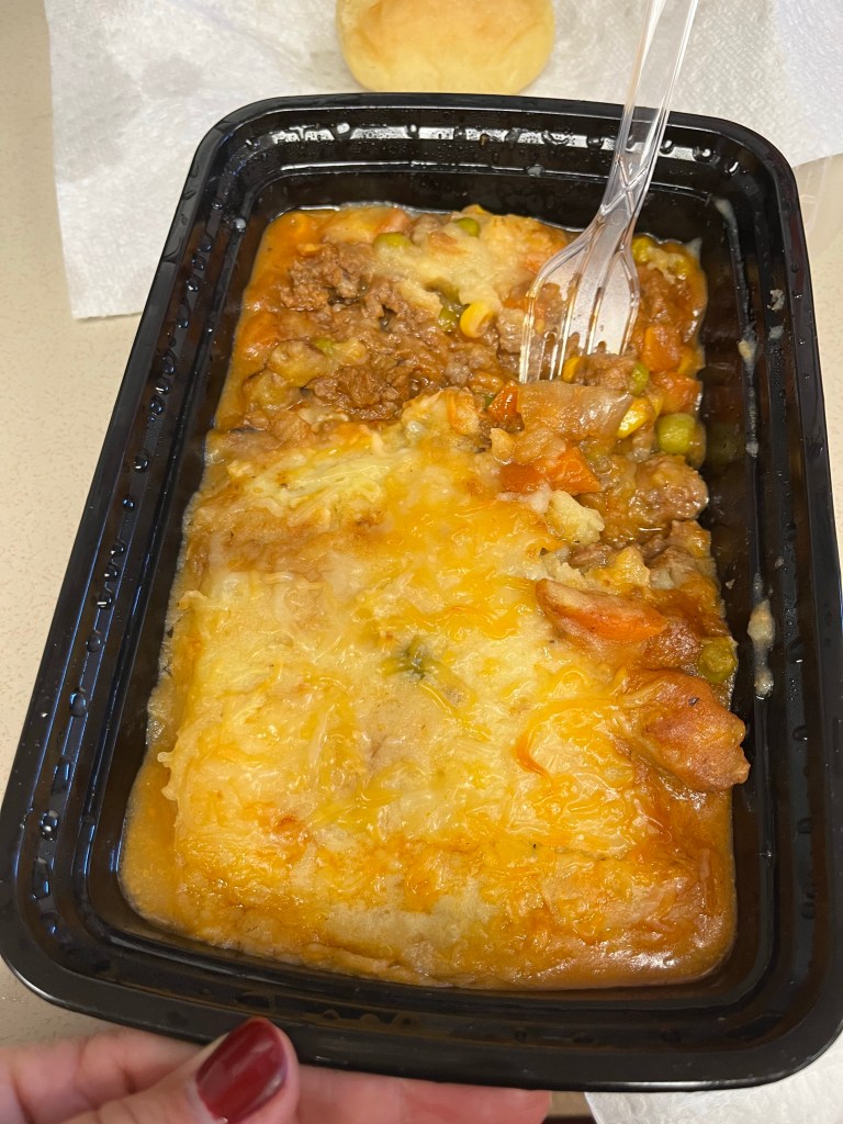 Friday lunch was amazing and I can’t wait to make this for Tom. Erica lightened up a shepherd’s pie.