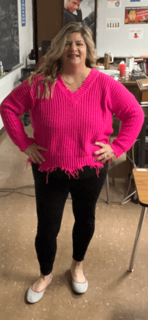 I love that hot pink sweater! I have one somewhere, I have to find it!
