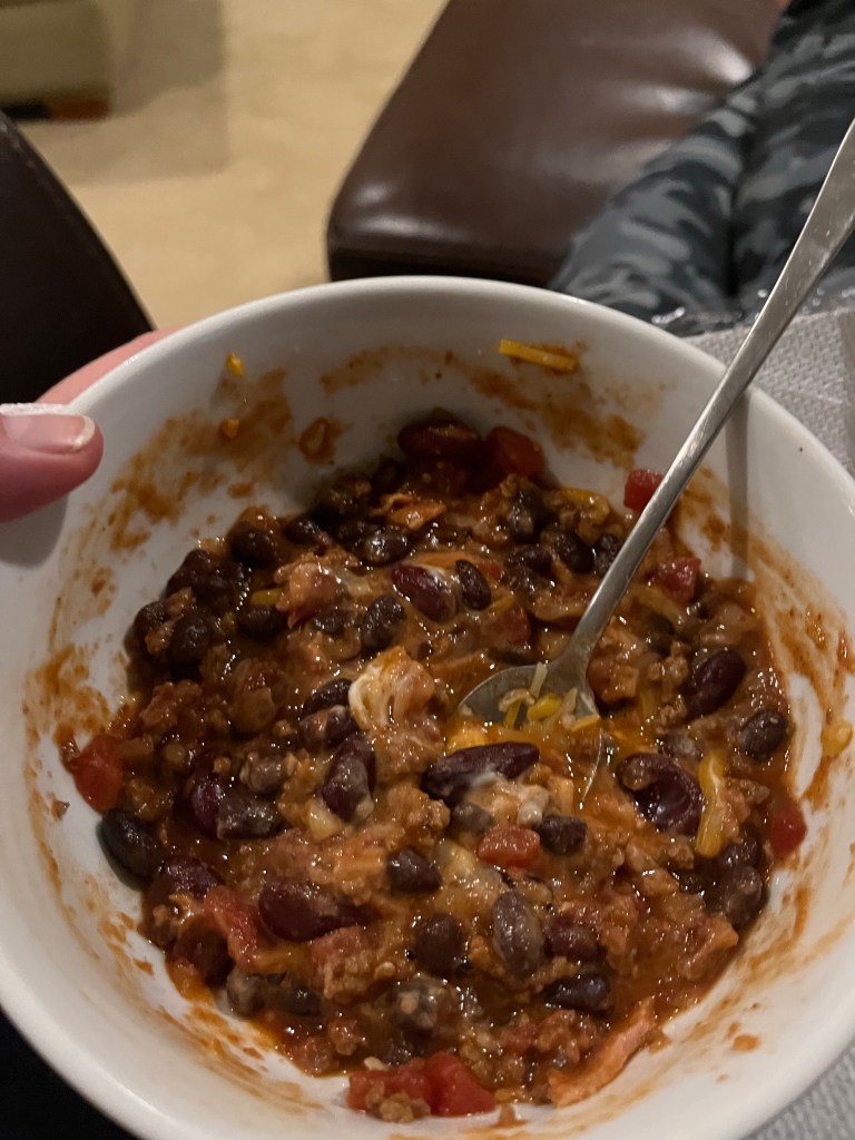 My new Soup Sunday! Kellyann recommended Leslie’s chili and it is good! Tom approved, too! It is a maple bourbon chili and you need to double the recipe. Tom asked for it and it was gone. I think next time (which is probably this Sunday) I will do a bit less maple syrup. Tom said not to, but you know…I’m the cook.