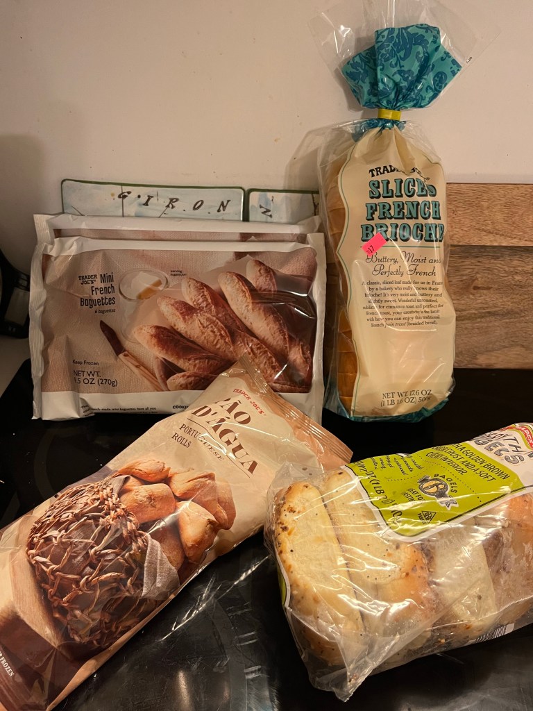 I love these tiny baguettes! I love this brioche bread for French toast and might do that on Christmas. I am not impressed with the Portuguese rolls so I won’t buy them again. And, the everything bagels are really good.
