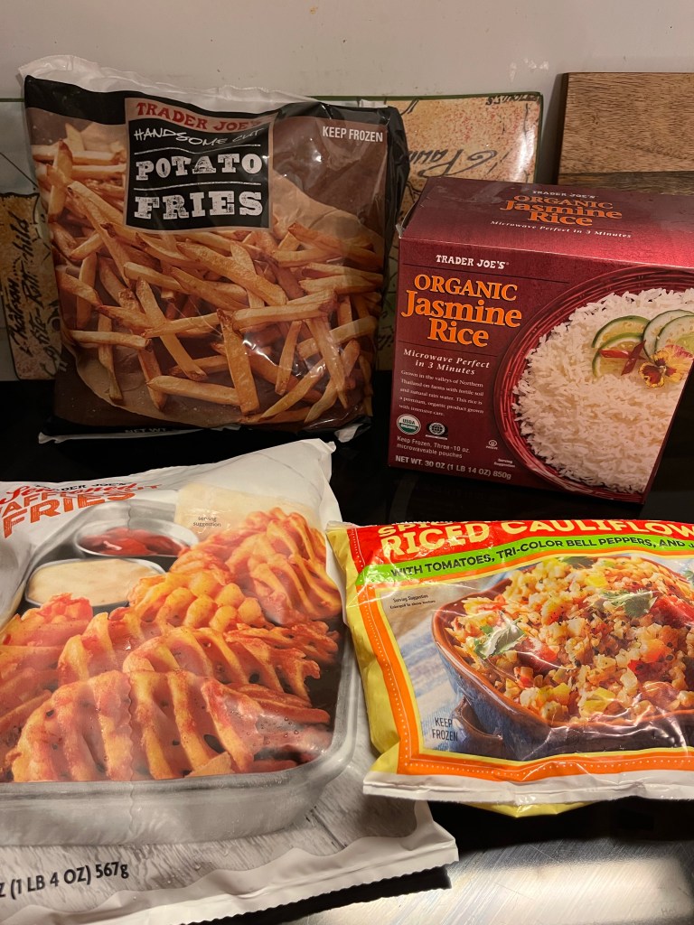 And, frozen items are where many people thing TJ”s really shines. I got some fries, some waffle fries, and some Jasmine rice with my kids coming home and I got some Mexican cauliflower rice to add to my burrito bowls.