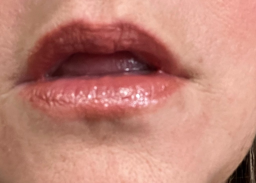 I am not sure what I’m doing with my tongue. It’s surprisingly hard to take your own lip photo. I am also doing this so Jennifer won’t be as mad at me. See, I put my lips out there, too!