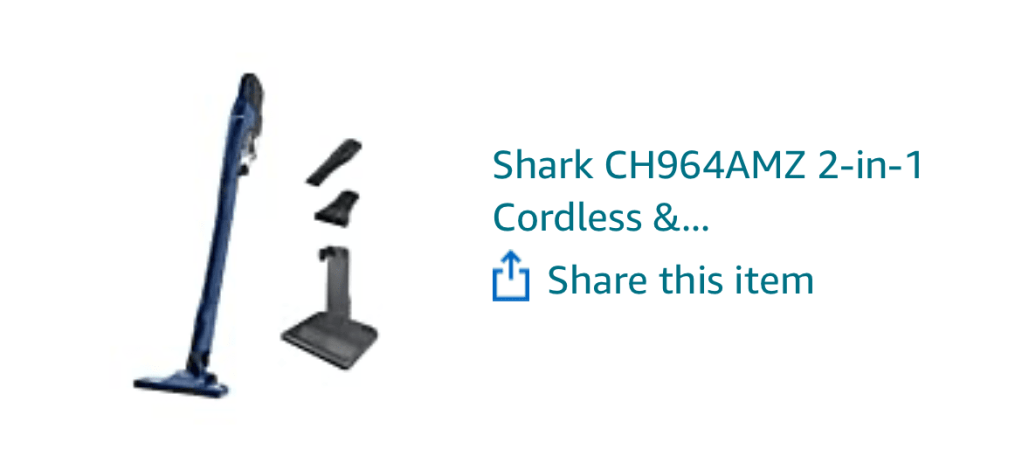 I love my new Shark! I got a refurbished machine and I picked the cheapest color – blue. It was $68. Cordless is a game changer. I want to use it! I have found it works great on my kitchen floor and is much easier than getting out the broom and dustpan. Ernie is scared of it, though, so I have been trying to use it when he is outside.