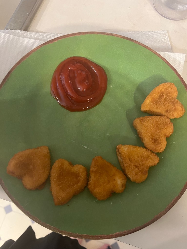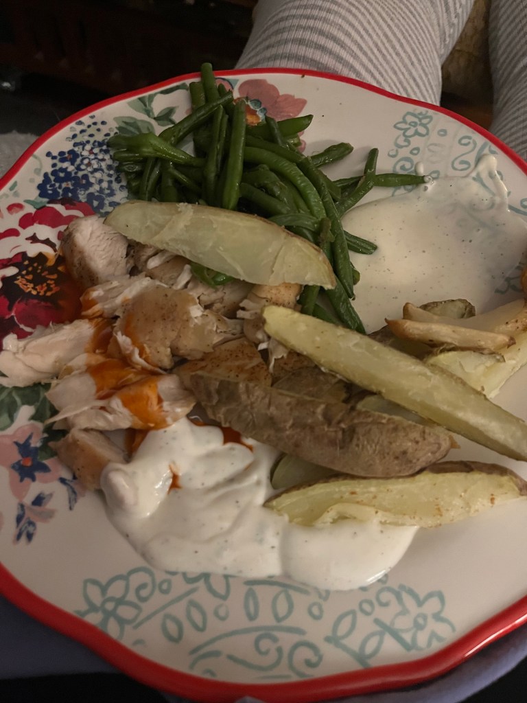 One night I made Tom the heart shaped nuggets and grilled chicken for myself with some buffalo sauce and homemade light ranch:
