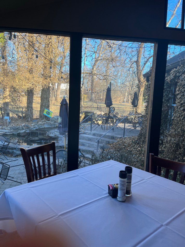 They have a really pretty outdoor space when the weather is nice, but there is a train track that runs right by it so you might have your conversation interrupted by the train whistle!