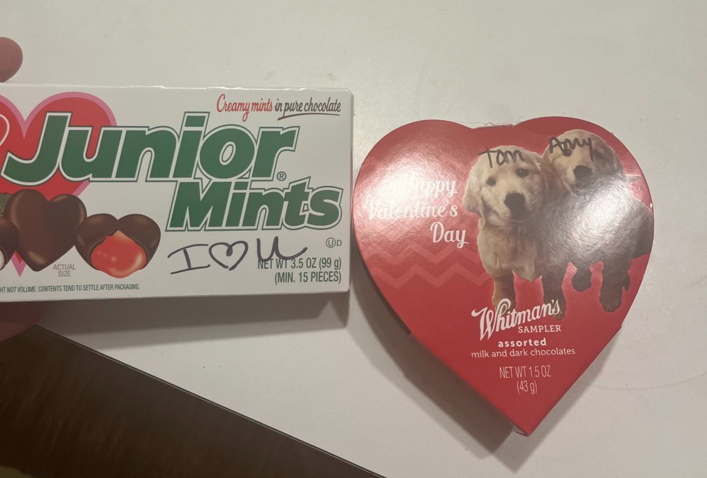 I left a couple boxes of candy in Tom’s truck on V Day morning: