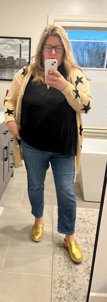 My favorite Abercrombie jeans. Lululemon cropped sweatshirts. They’re so soft and I’m obsessed. no golf clothes yet. I found a new to me shopping source. Quince. Saw them on IG and ordered a cashmere button up sweater and i love it! I want to get several more things but have given out my referral code to several people and am waiting to see if anyone buys anything because they get $20 off and i get $20 to spend! If anyone wants the referral code – send me your address on here and I’ll gladly share! Their clothes are amazing quality and the price is unbeatable!!
