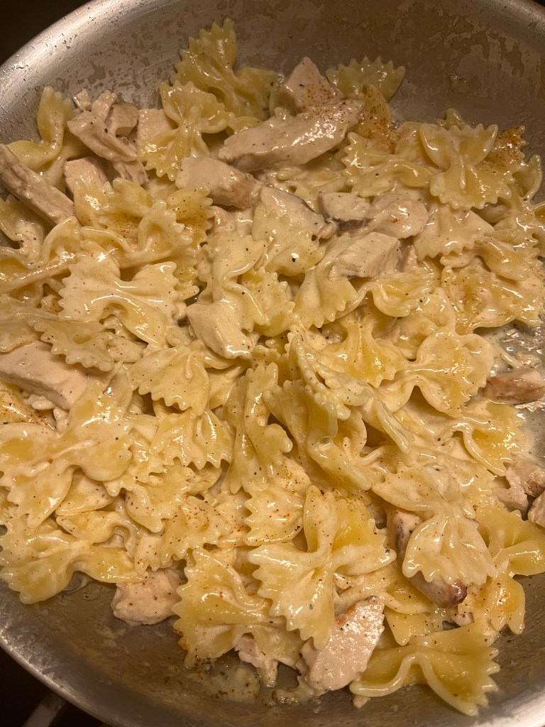 The kids had a friend over Tuesday and I made bowtie alfredo for them and then our dinner that night was…