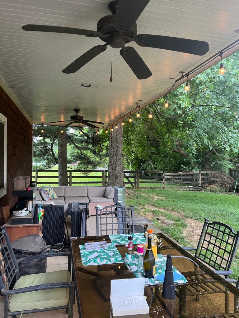 Luckily, it only lightly rained so it was fine. I turned on the patio lights because it was a grey day.