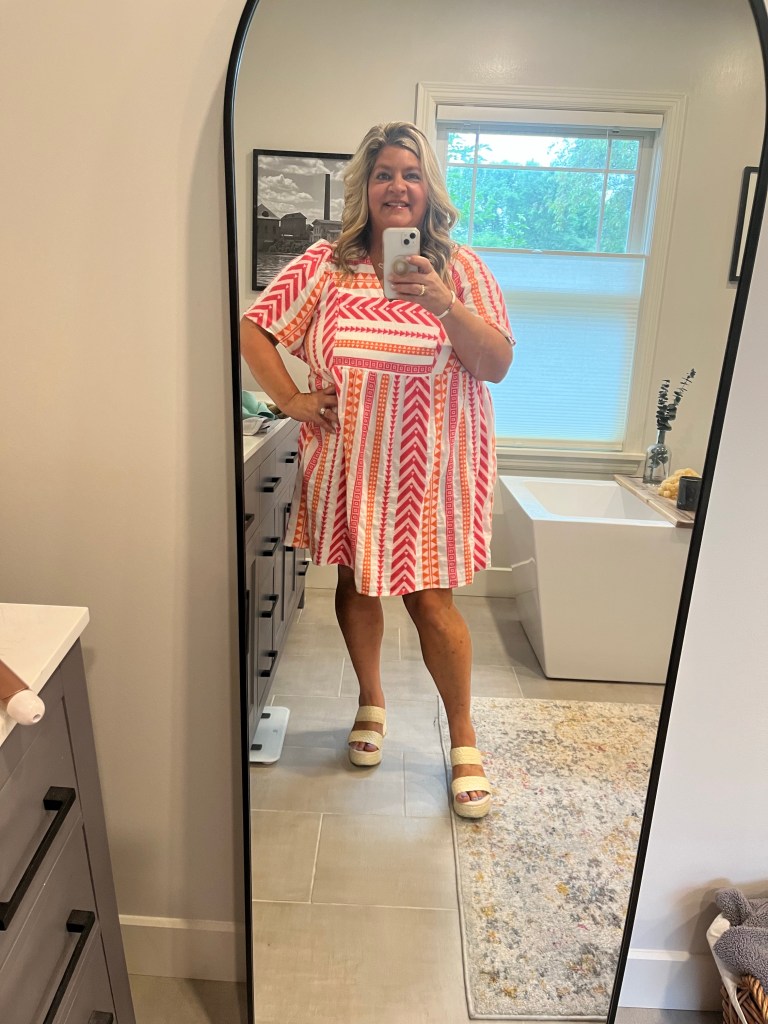 Last Friday I wore this dress to go to the vet and to lunch. For the vet, I wore my flat sandals and then for lunch, I changed into my wedges. I would not normally dress up for the vet (do not get any ideas!), but I had a tight window of time between the appointment and my lunch date. You see the wedges below: