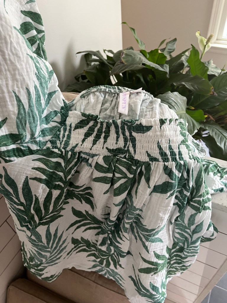 And, this top was gauzy and linen-ish and on clearance for $11! You know how I love a palm print! I hope it doesn’t look like marijuana leaves because I couldn’t wear that to school. It says it is a sleep top, but why would I dress up to sleep? I would not be able to sleep in a blouse? Sleep blouse? Do not let labels hold you back, ladies?