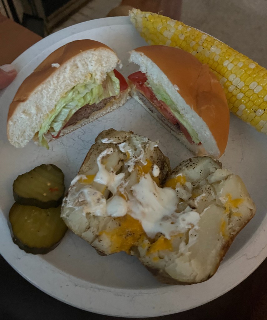 For dinner we were happy to have all of us home and I made burgers, corn, and potatoes.