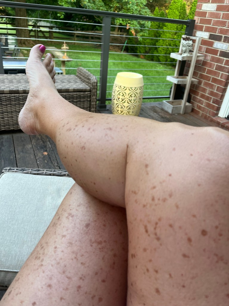 I froze my Sun Tan City membership and this is me doing my own legs with a mousse self-tanner I had – not too bad!