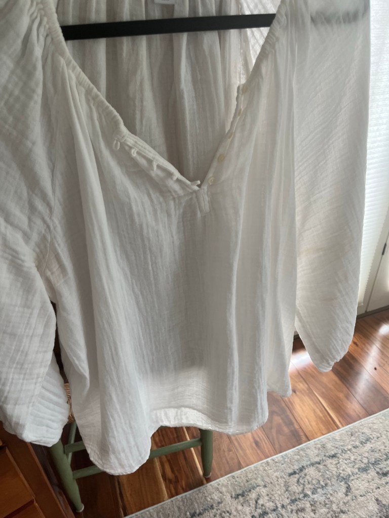 This Old Navy consignment store blouse (new with tags) that is gauzy. I have worn this a lot!