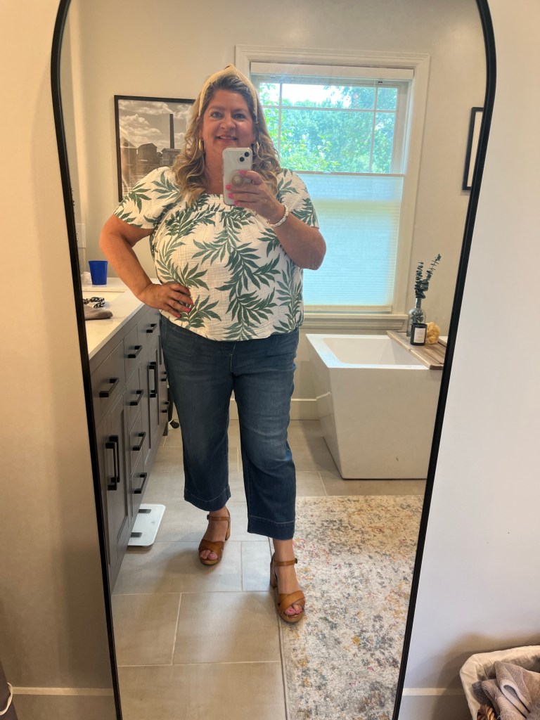 So, for the comedy show Saturday night, I wore the Dillard’s Westbound jeans again with my Shein top (still debating how I think this fabric feels…) and my Cushionaire from Amazon MIA clog sandal dupes.
