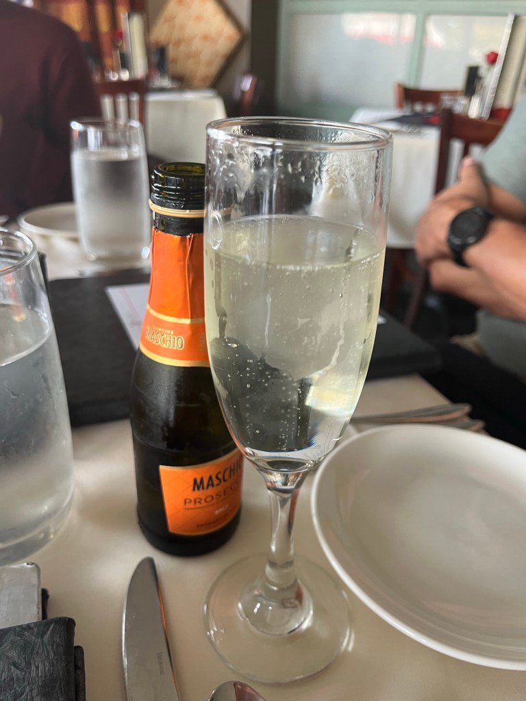 I had a glass of prosecco, and they give you complimentary bruschetta: