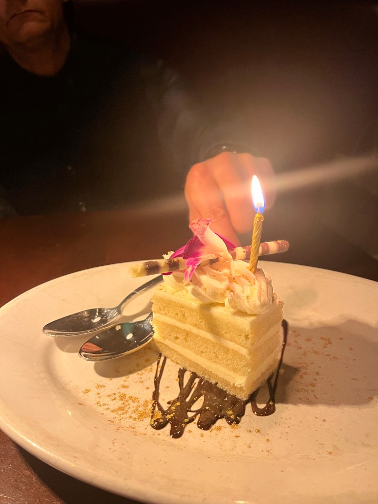 And, I got a delicious and lovely piece of cake to end the meal. I also couldn’t eat much of this, but enjoyed the rest on Saturday night.