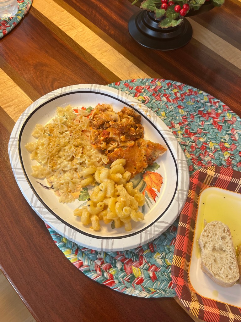 Then, for dinner, we had the pasta bar and it was even better than last time. We had bread, salad, bowtie alfredo, cavatappi mac and cheese, spaghetti, and lasagna.