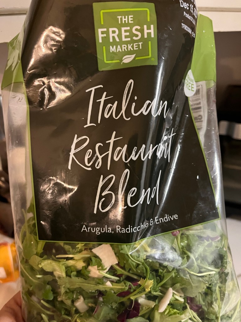 For dinner, I made a really good salad after stopping by The Fresh Market and spending more than I had planned because it just all looks so good! I highly recommend both this salad mix and the dressing.