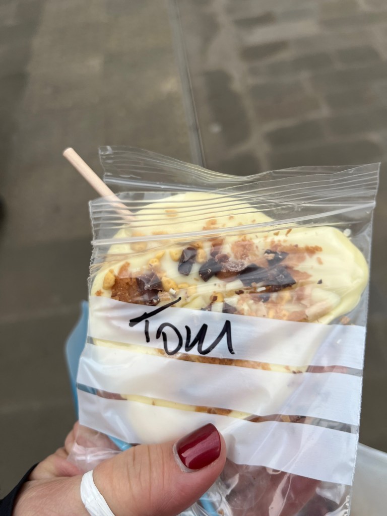 We left around 10 to walk up to the same area for our chocolate tour, but first we wanted to find some breakfast. We didn’t quite have enough time for a sit-down meal, so we went to a fabulous bakery. It was December 23rd, so you could tell people were preparing for their Christmas meals. It was hopping!