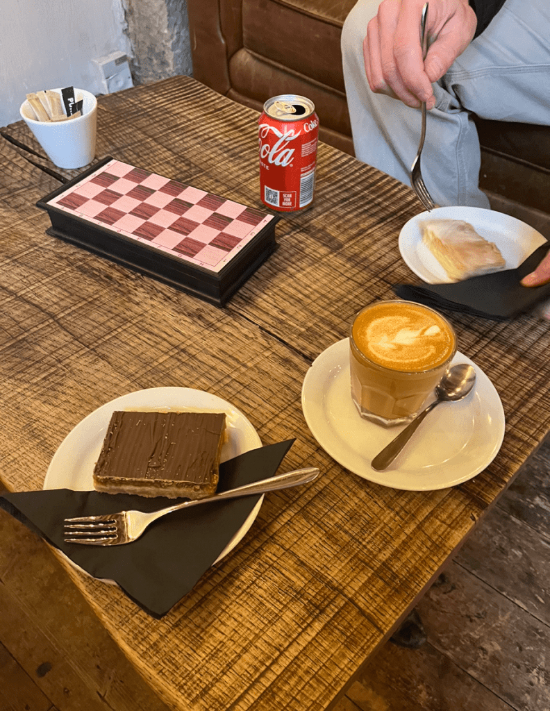 Tom had a Coke and a lemon bar and I had a coffee and a millionaire shortbread bar. Tom had to help me eat mine and we both agreed that millionaires eat well – it was so good!