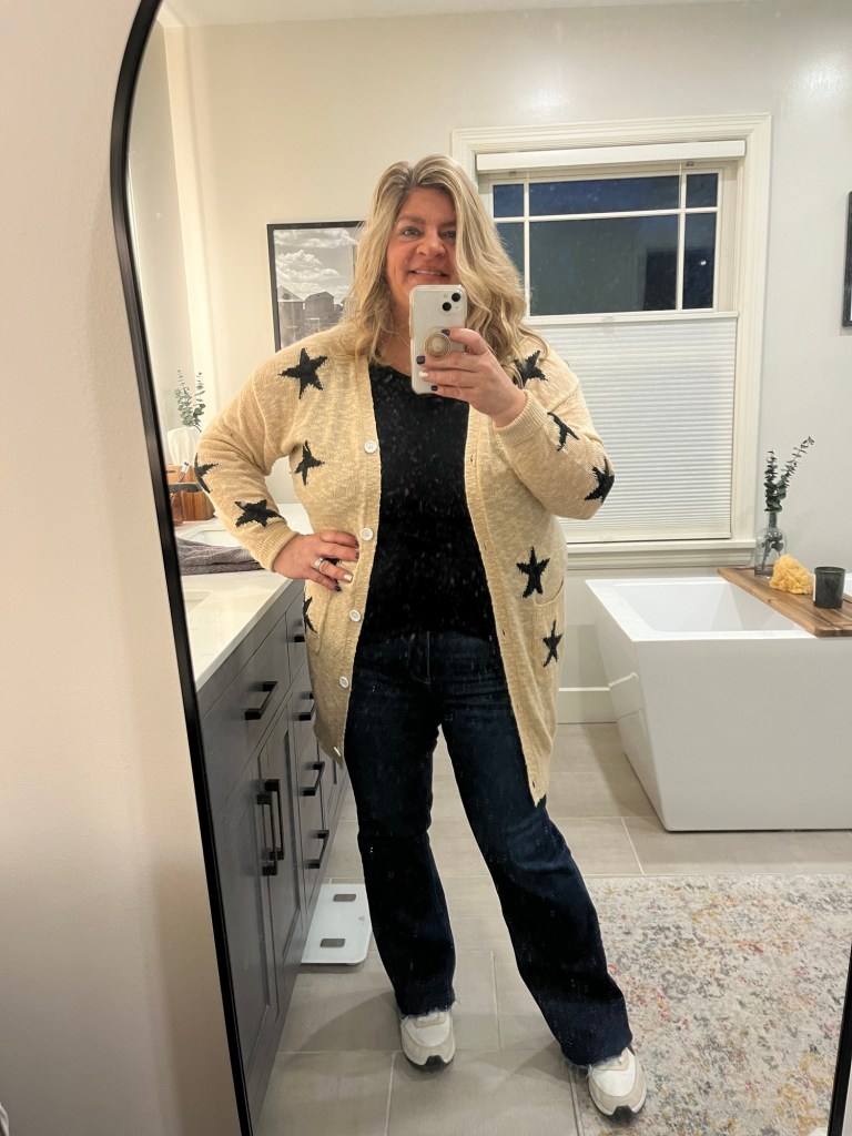 Love the star sweater!! My closet is doing well, so many new sweaters this year and loving them. I also am making sure to rotate in my older things and have a few things I do need to make outfits with.