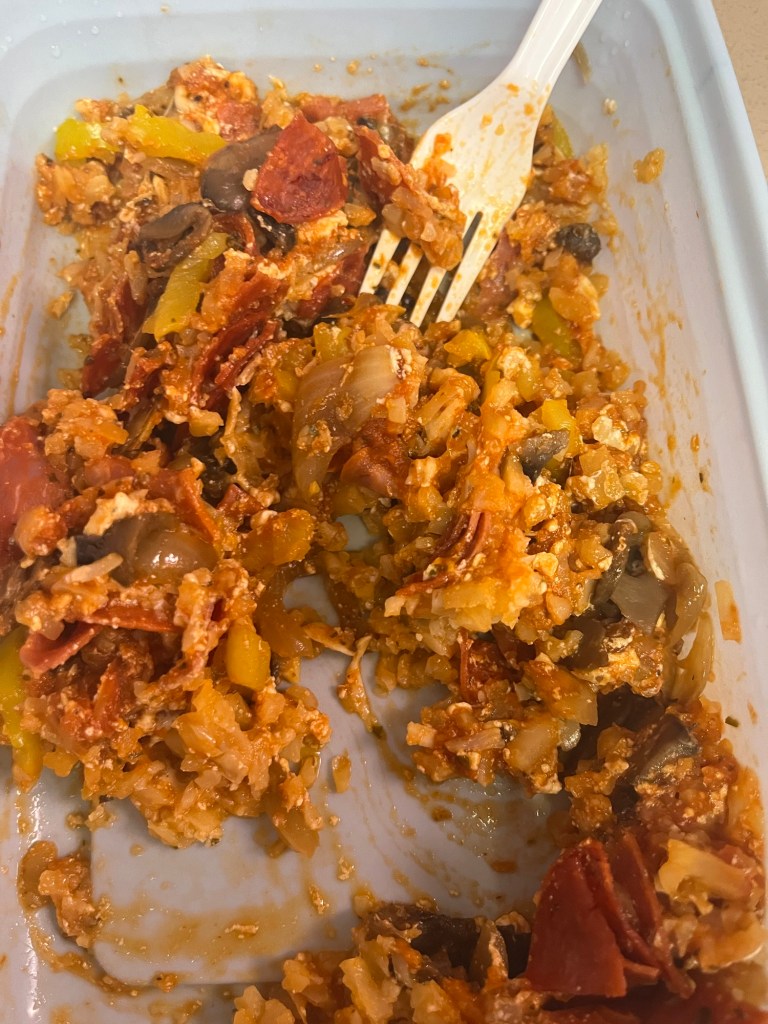 I made pizza bowls again this week with cauliflower rice, turkey pepperoni, pizza sauce, veg and this time I added the blended cottage cheese mixture and it was really good!