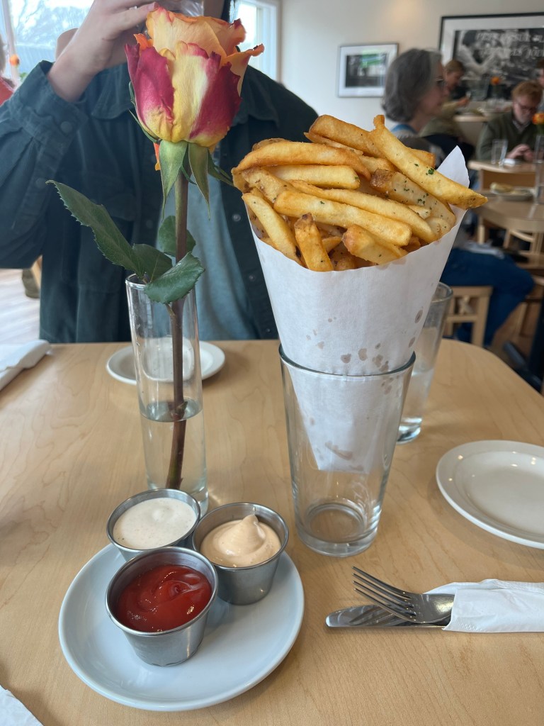 Belgian pommes frites, that really takes me back. We lived in Belgium for six years and made many stops in those years at the little frites stands. I guess they were the forerunner to the food truck. Frites with mayo, divine!