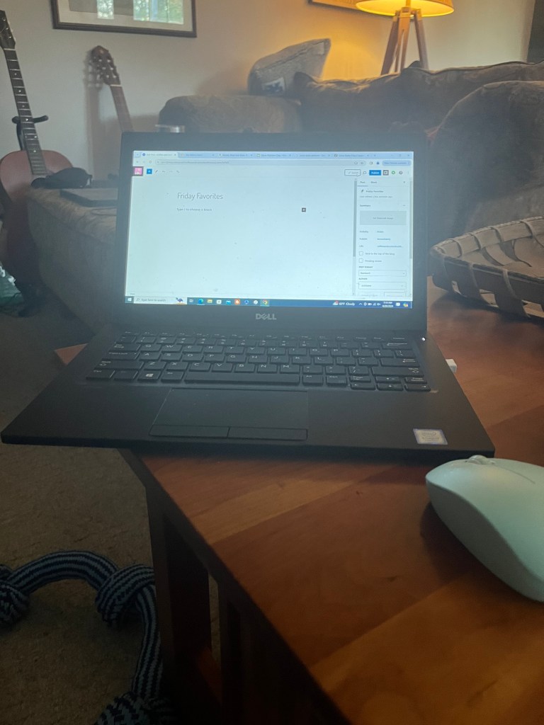 So, I have moved my morning devotional reading, blog reading, and writing to the living room floor and coffee table. I also have my coffee there for now. I sit on the floor and play toys with EO before I even think about doing anything on my own. I am also trying to work on him playing independently – lol.