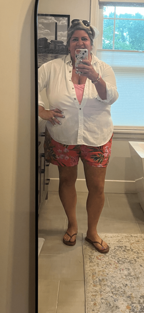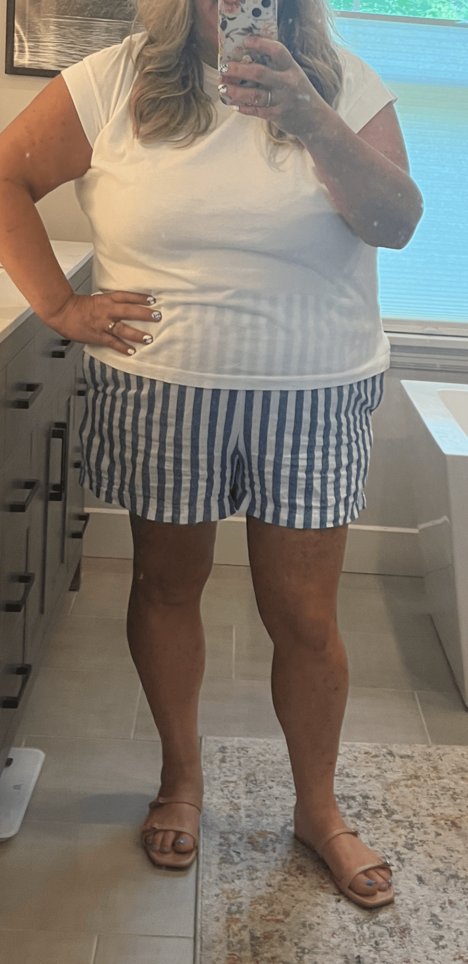 I find myself reaching for my two new pairs of Old Navy shorts lately. These are a linen blend and they have elastic waists and pockets and were $14.99 each. I feel like they could be J.Crew or J.Crew Factory quality and have already washed both pairs two or three times.