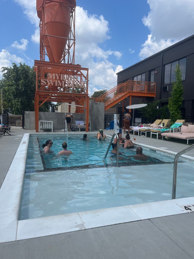 We had a really nice day! I think we stayed from 11:30-4 or so. It was hot so we were in the pool basically the whole time.