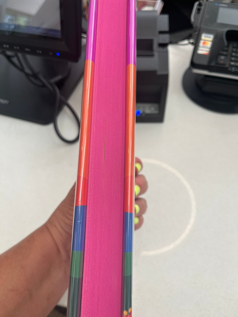 I love color and attention to detail. The pages are hot pink! Well, I should say they are only hot pink on the outside. I don’t think I could read an entire hot pink paged book. Ouch!