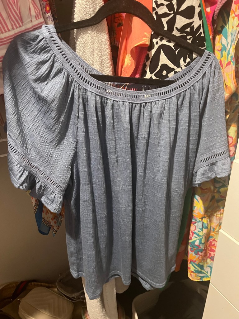 My sister and I went into TJ Maxx when we were there helping my mom. It was a big deal for her town to get a TJ Maxx! Did I need anything? No! But, I did find a couple of tops that I think will be handy when I start “getting dressed” more.