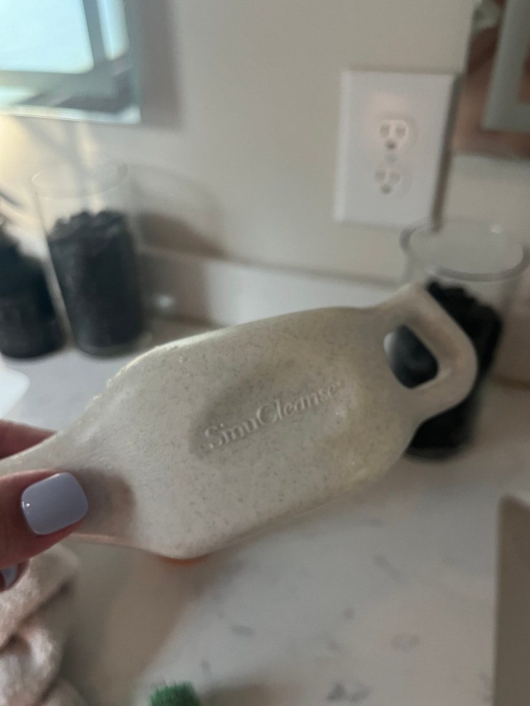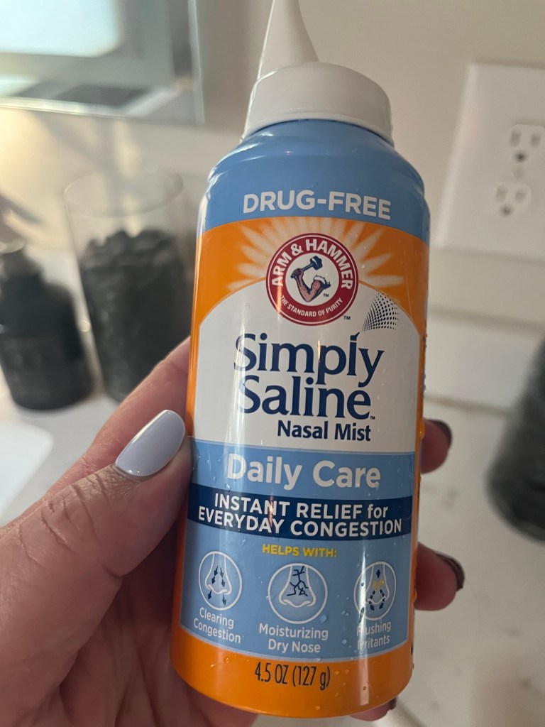 But, I swear this guy – my neti pot- cuts down congestion by half the time at least. I use the saline salt packets and distilled water (and heat the water slightly) and do this in the shower when I am sick.