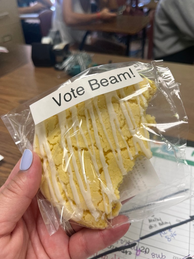 I have a student running for student council with his mom’s cookies. Sugarbeam Cookies is their business and this lemon cookie was amazing.