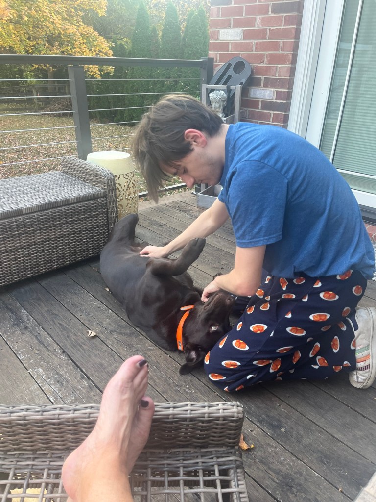 Mason is literally in love with Eddie Otis and it’s been so fun to see. Our first lab was 1.5 years old when we had the twins and died when they were 9. Our second lab we had from the time they were 10 until they were 21. There is something about this time or this dog that Mason has really been drawn to and EO loves him, too.