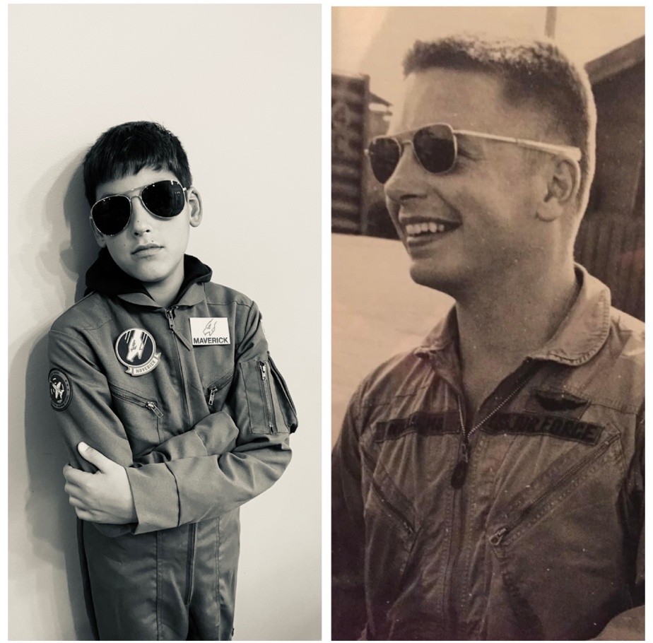 And, our group text with my mom and sisters had the cutest thing in it! My youngest nephew dressed up like Grandpa for Halloween or Maverick, whichever you want to say!