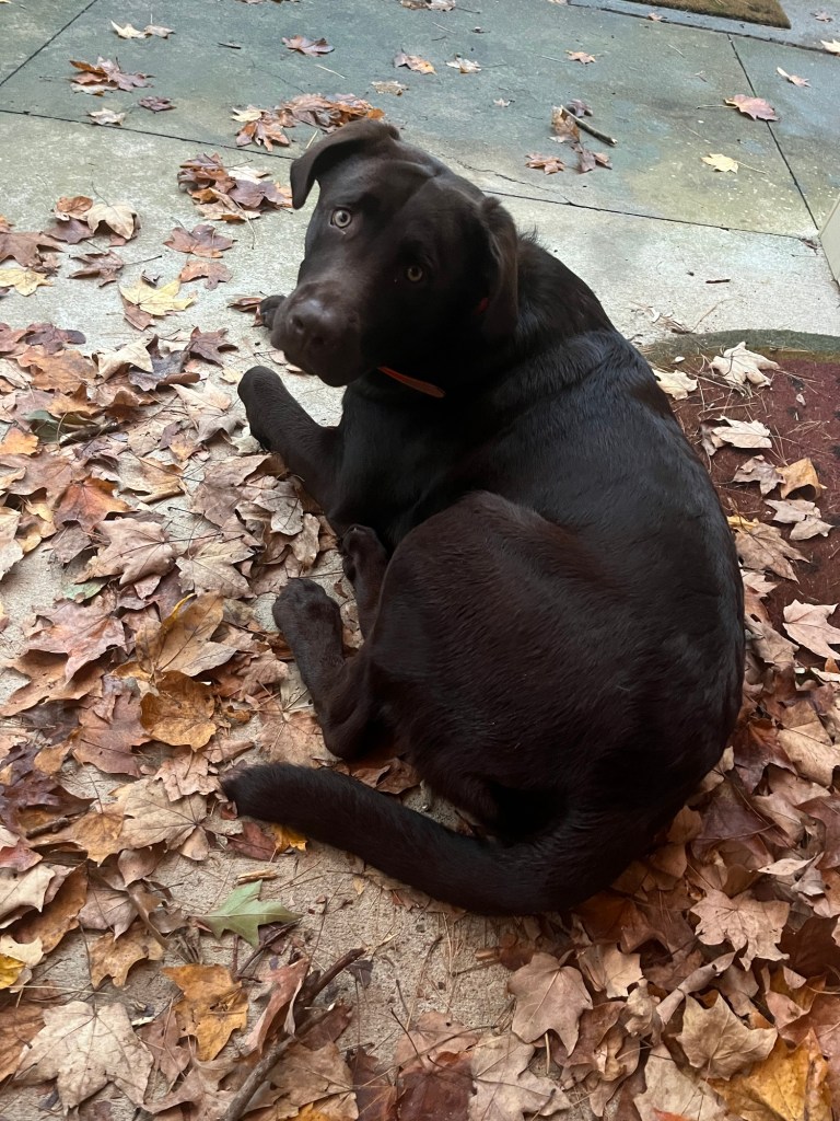 And, let’s leave with another Eddie Otis photo because he is always with me when I am blogging. We think he is about 75 pounds now. He loves catching falling leaves and he loves eating leaves, too.