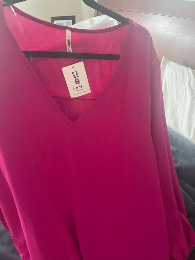 Last Thursday a local boutique was having a holiday open house so I took myself. It was way too crowded so I went to another boutique in the same shopping center. If you are local, I am talking about Darling State of Mind and Tunie’s. Well, I also went to the Tunie’s Outlet where I picked up this magenta dress for $20! I see the need to have more solid colors in my closet and I loved the style of the dress, too. I think it will work in multiple seasons and I will show you a picture of me wearing it as soon as I can make that happen!
