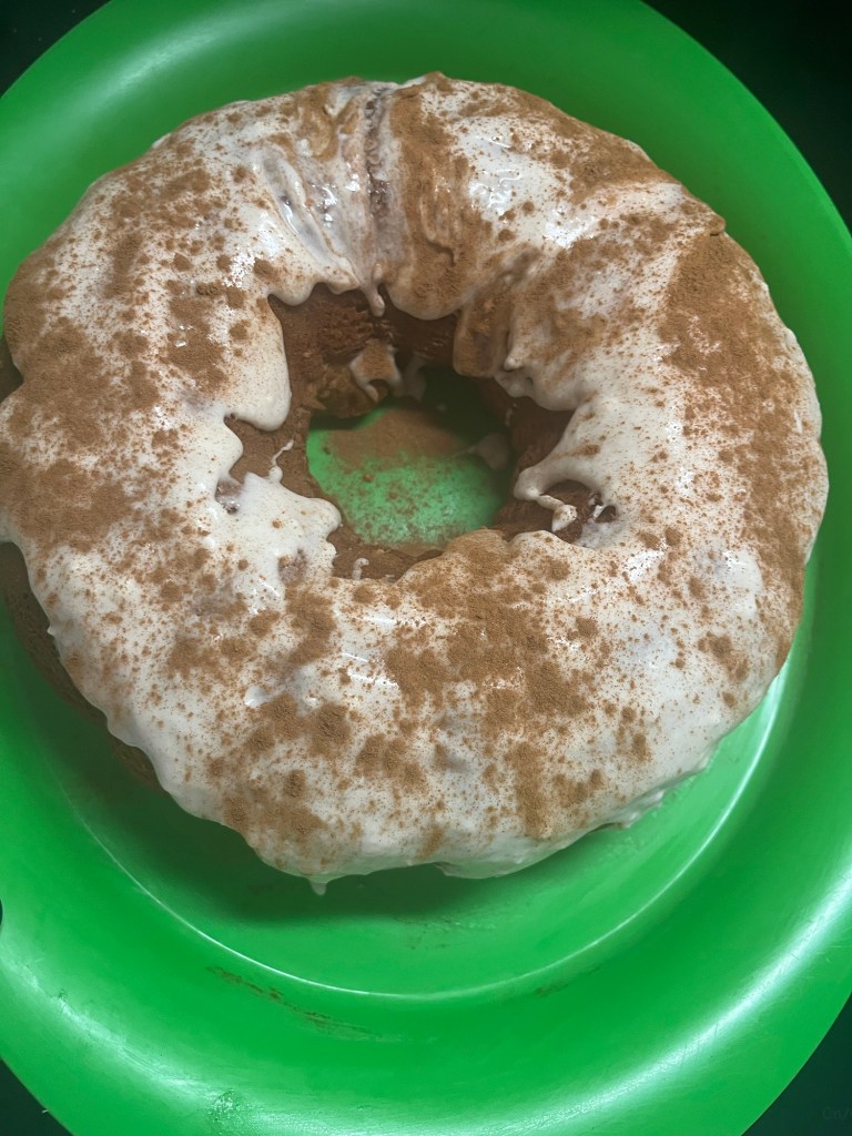 We had a school Friendsgiving and I made a spice cake from a box mix in my bundt pan. I made a homemade cream cheese cinnamon frosting.