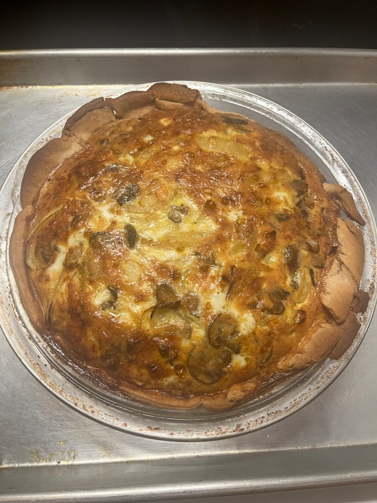 Can you see the little patch of white above his orange collar on the left? It was so weird having him out of the house from 8-1 and I missed him so much. I stress cleaned and made a mushroom and caramelized onion quiche – as one does.