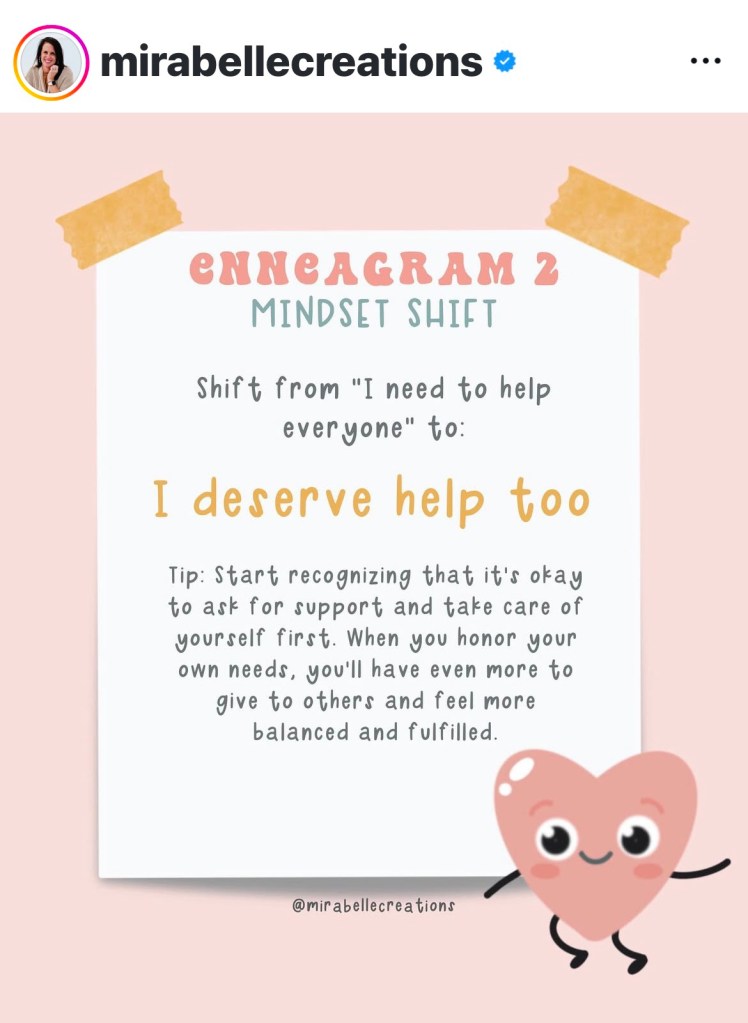 I sometimes take on too much and don’t like to ask for help. This Enneagram Type 2 description fit me to a T.