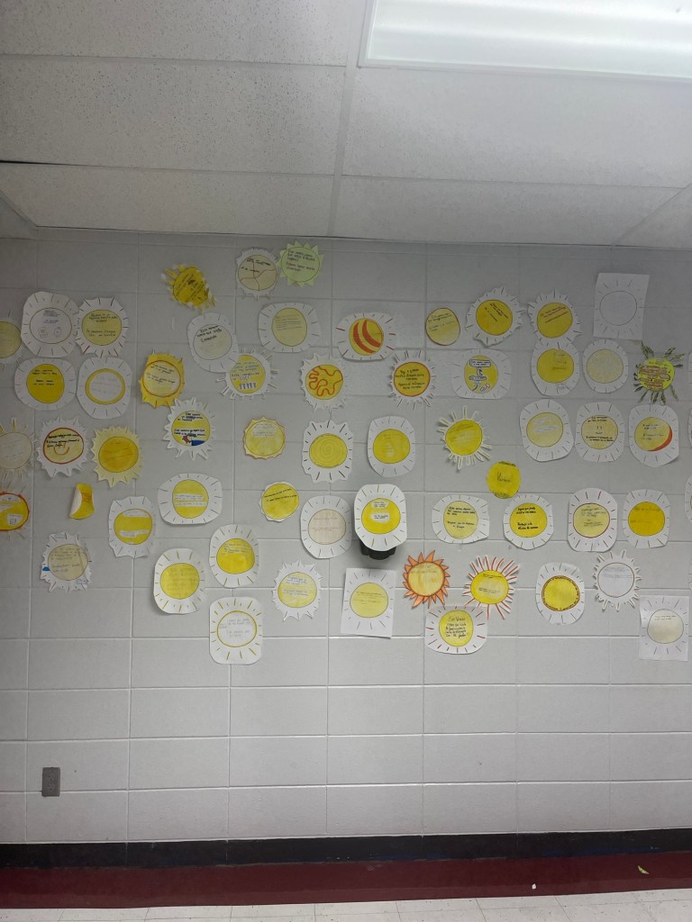 We replaced our shamrocks that told why we felt lucky with our suns which tell what we hope to do and will do this summer. We used the future and subjunctive tenses for any nerds out there.