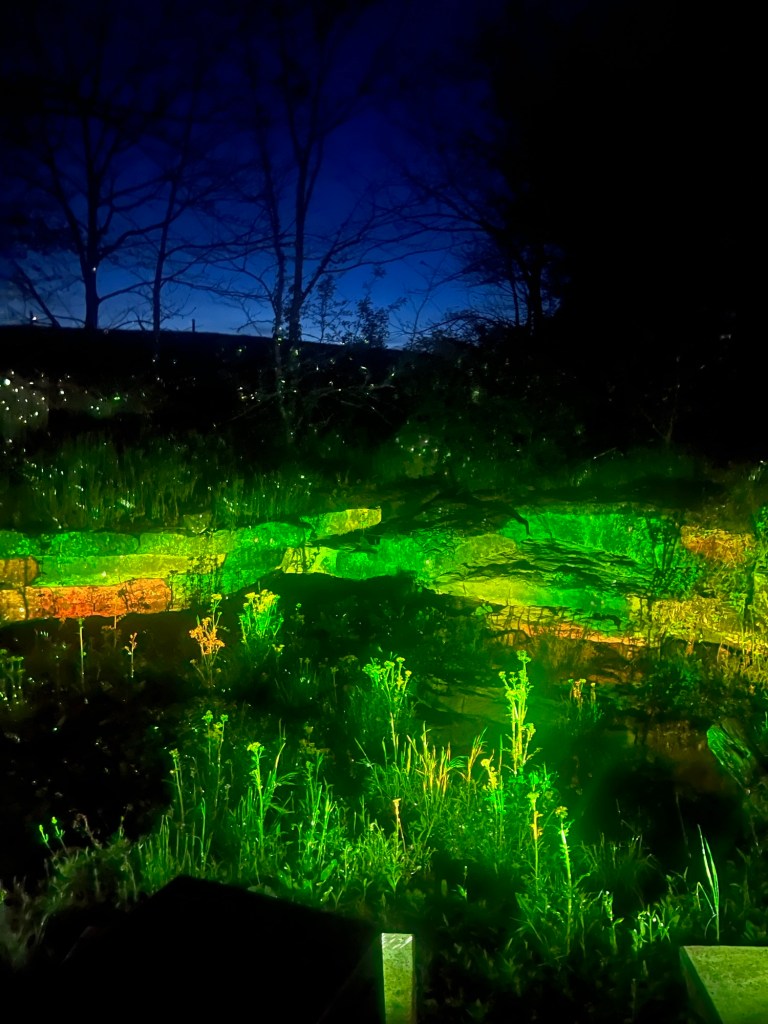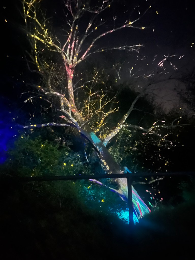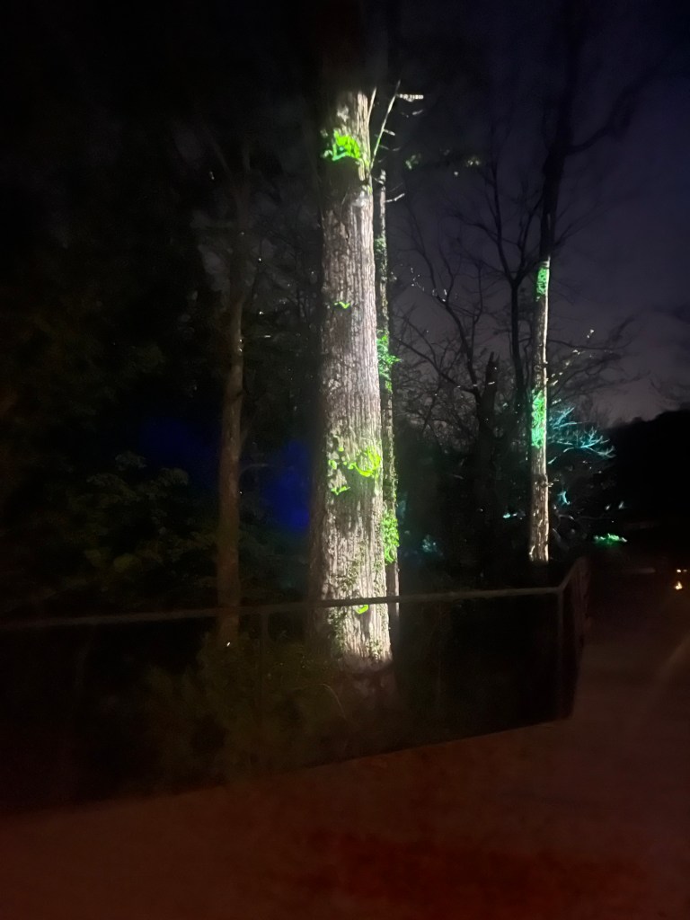The owners of the farm a huge local art supporters and big people in the community. After dark, you can go on an “art walk” which is a lighting design set to music. I have been two or three other times and it was just as spectacular as I remembered. At the very end you can see horses running through the trees. I didn’t get a photo of that part.