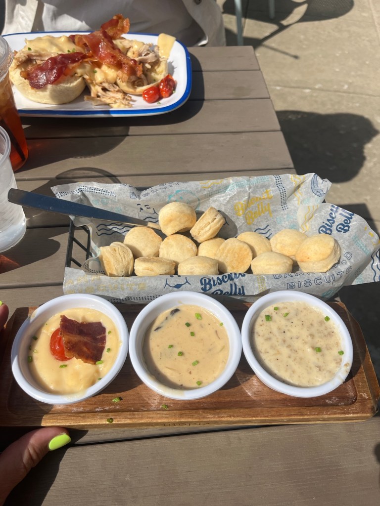 Sunday morning we did brunch! We were able to sit on a patio! We went to Biscuit Belly. I’m trying to get rid of my biscuit (entire loaf) belly, but you know, it was a special occasion.